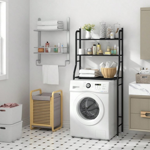 Полиця над пральною машиною Laundry Rack TW-106 — це сучасне та функціональне рішення для організації простору у ванній кімнаті, пральні або на балконі. Конструкція вирізняється продуманим дизайном, який дає змогу ефективно використовувати вільне місце над пральною машиною, створюючи додаткову систему зберігання без потреби встановлення громіздких шаф.